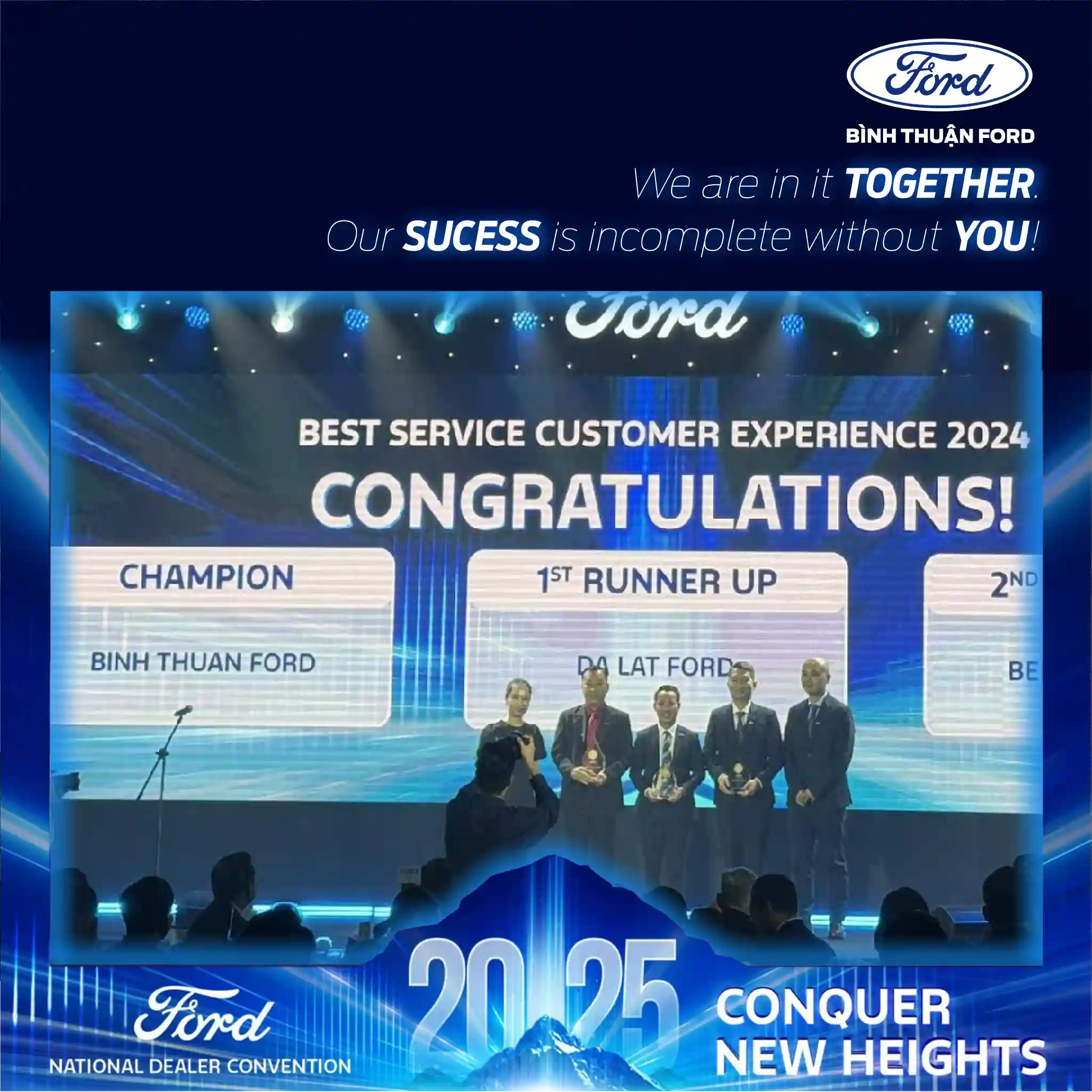 Trong niềm hân hoan về các thành tích đạt được, Ông Triệu Minh Phúc - Tổng Giám Đốc Bình Thuận Ford đã có những chia sẻ: “Nỗ lực của Toàn thể CBNV với tinh thần "Customer First" đã được tưởng thưởng xứng đáng! CẢM ƠN TẤT CẢ CÁC BẠN! We are in It TOGETHER, Our SUCCESS is Incomplete WITHOUT YOU"