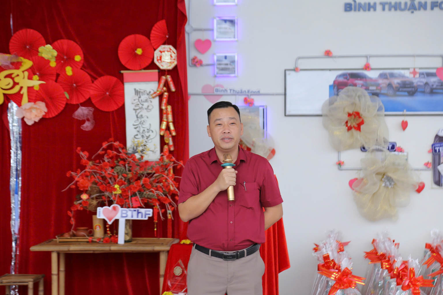 Trong không khí hân hoan của những ngày cuối năm, đại gia đình Bình Thuận Ford đã cùng nhau sum vầy tại showroom để chia sẻ vui buồn trong một năm qua, đồng thời dành tặng những phần quà Tết cho CBCNV. Buổi tổng kết là dịp để Ban lãnh đạo gửi lời cảm ơn sâu sắc đến toàn thể cán bộ nhân viên, những người đã không ngừng nỗ lực và cống hiến hết mình cho sự phát triển của công ty trong suốt một năm qua.