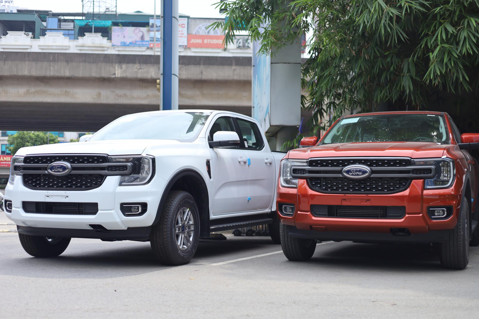 Ford Ranger sở hữu vẻ ngoài mạnh mẽ với thiết kế cản trước lớn, lưới tản nhiệt hình thang cùng các đường nét cơ bắp chạy dọc theo thân xe. Thiết kế này không chỉ mang lại sự nam tính mà còn giúp xe trông vững chãi và uy lực.