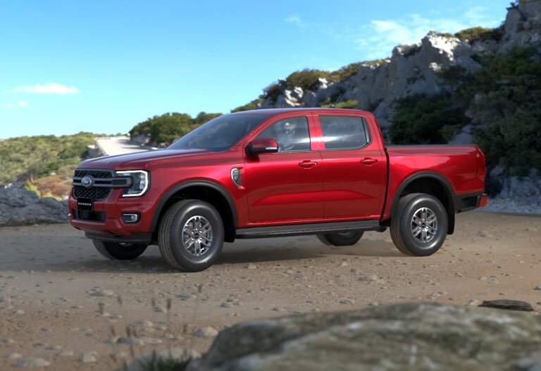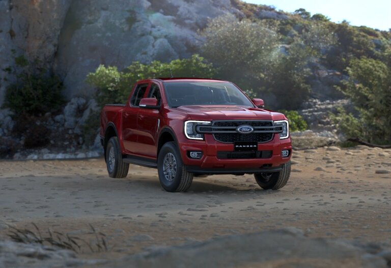 Lưới tản nhiệt màu đen mới kết hợp với đèn halogen dạng hình chữ C đặc trưng và đèn sương mù phía trước đậm chất Built Ford Tough.