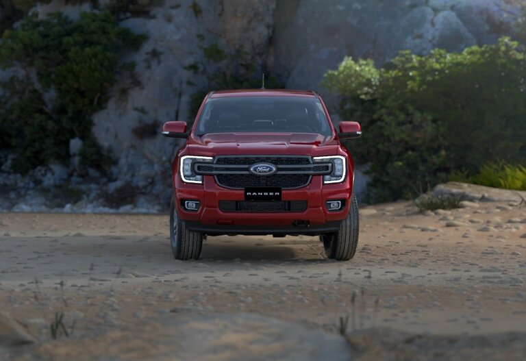 Lưới tản nhiệt màu đen mới kết hợp với đèn halogen dạng hình chữ C đặc trưng và đèn sương mù phía trước đậm chất Built Ford Tough.