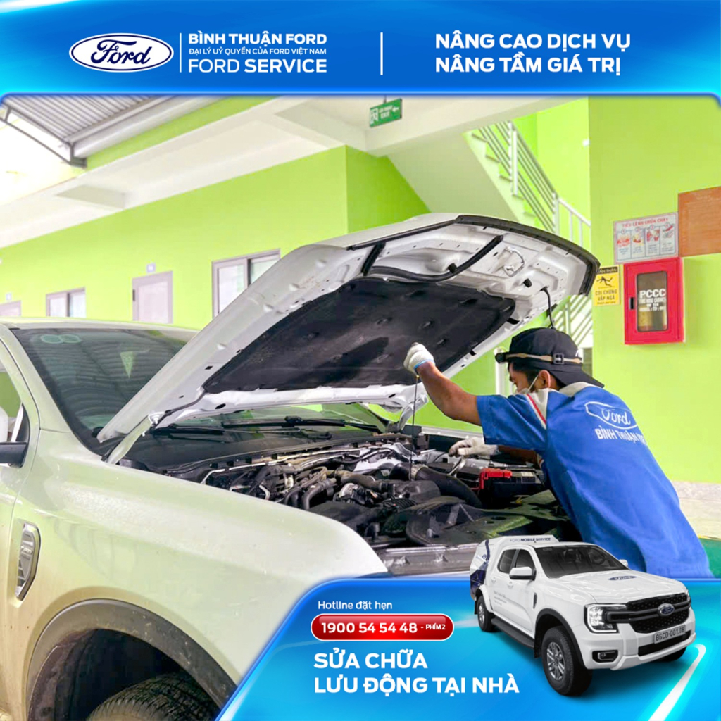 - Chăm Sóc Toàn Diện Với Đội Ngũ Kỹ Thuật Viên Chuyên Nghiệp: Đội ngũ kỹ thuật viên giàu kinh nghiệm của Bình Thuận Ford sẽ đến tận nơi để kiểm tra, bảo dưỡng xe và xử lý các vấn đề kỹ thuật nhanh chóng và hiệu quả, mang lại sự yên tâm tuyệt đối.